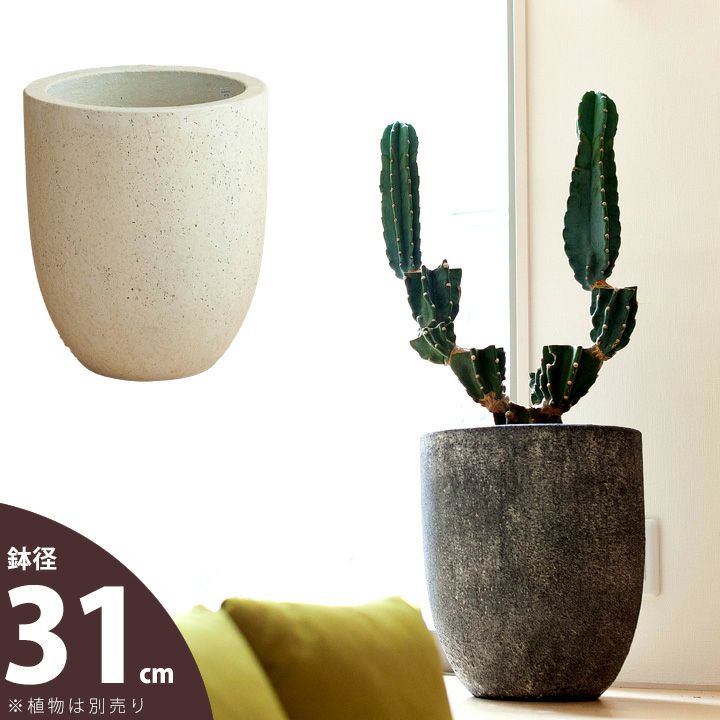 鉢の重量は約6kg。ずっしり重みがありますが、同じサイズの陶器鉢などに比べると軽いです。 鉢には排水穴がありますが、鉢の中に敷く受皿をサービスでお付けします。なので「植木鉢カバー」として、ご利用頂けます。 6号サイズの植物だと、やや鉢が大きいかも。7号~8号サイズの植物にお勧めです。(8号サイズの植物の場合、鉢の形状によっては入らない場合がございます。こちらの植木鉢、内径は「25㎝」です。サイズをご確認の上、お買い求め下さい) |
