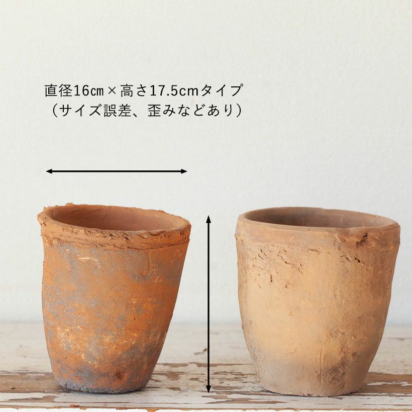 何年も使ったような寂びた風合いが持ち味 モスポット:直径16.5cm/高さ17.5cm