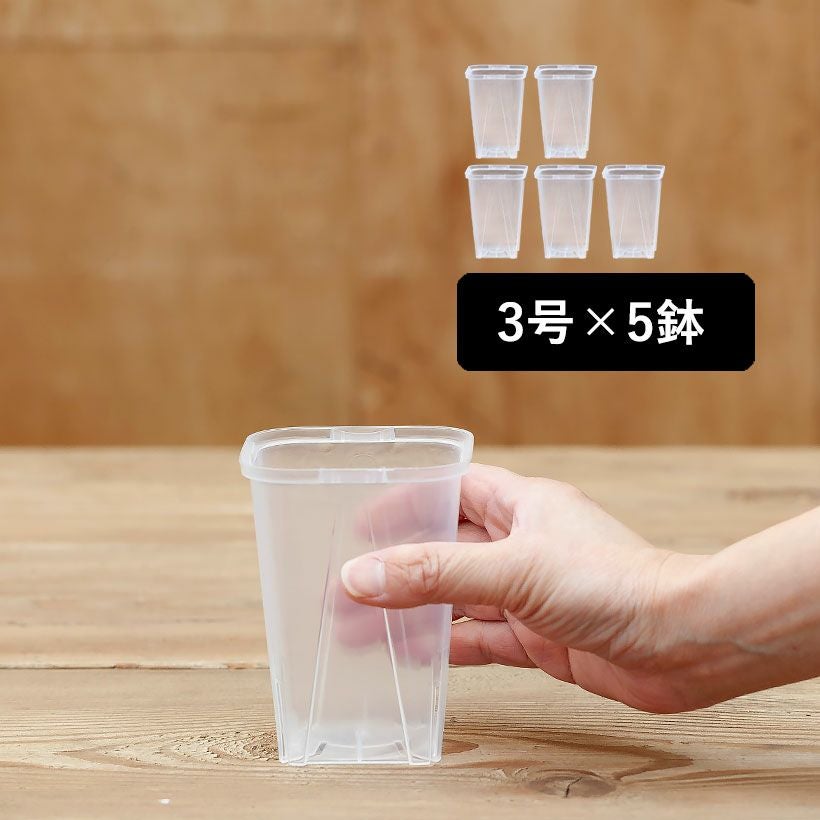根が見える安心感! 透明スリット鉢[3号サイズ×5鉢SET]