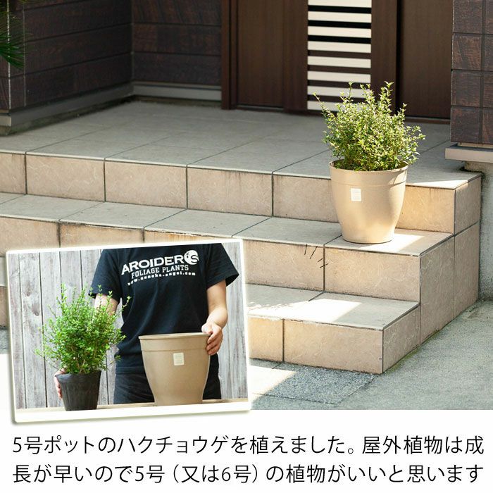 もしくは、"見栄えの植え替え"でも5号サイズ以上の植物の場合は、一回り(できれば二回り)大きい鉢を選ぶことを推奨します。
