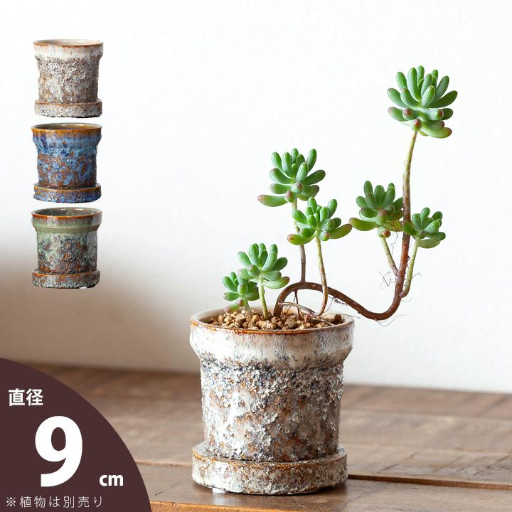 2号~3号サイズの植物に。 小さい植物を引き立てる、ザラザラ釉薬の陶器鉢(9cm)