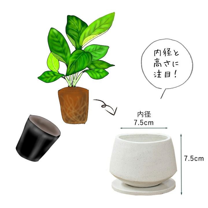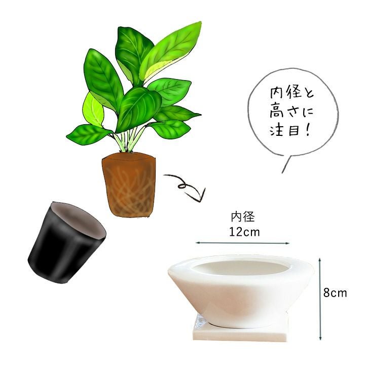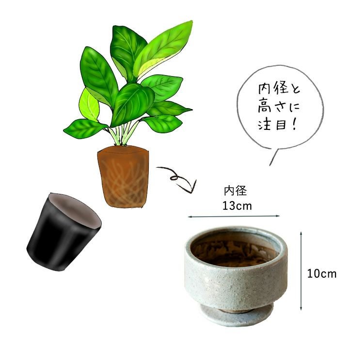 ②植え替える鉢の「内径」と「高さ」が、植物より大きいことが条件です。
