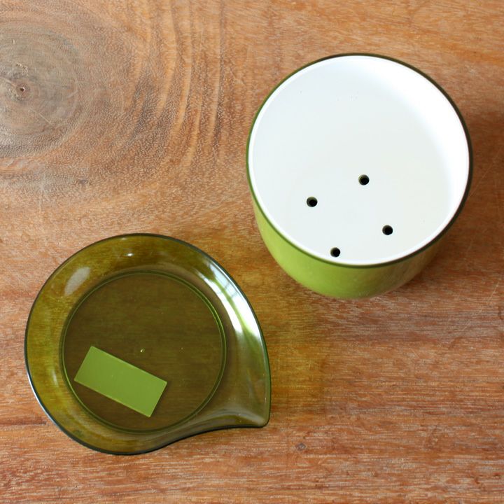 また受皿もセットで付きます。しかも同色の専用受皿で、カタチも単なる「丸」でなく ヒョイ♪っと持ちやすい形状で、日頃のお世話もしやすくなってます。
