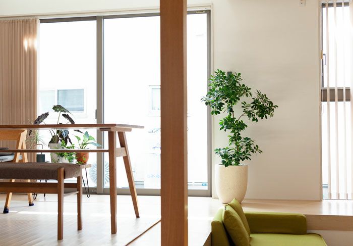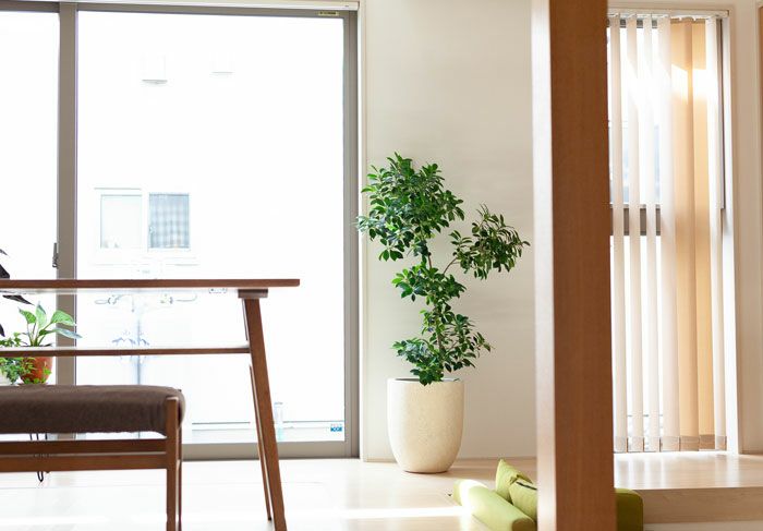 大きな植物はインテリアの中心的な存在。鉢1つで、部屋の雰囲気がグッとよくなります。