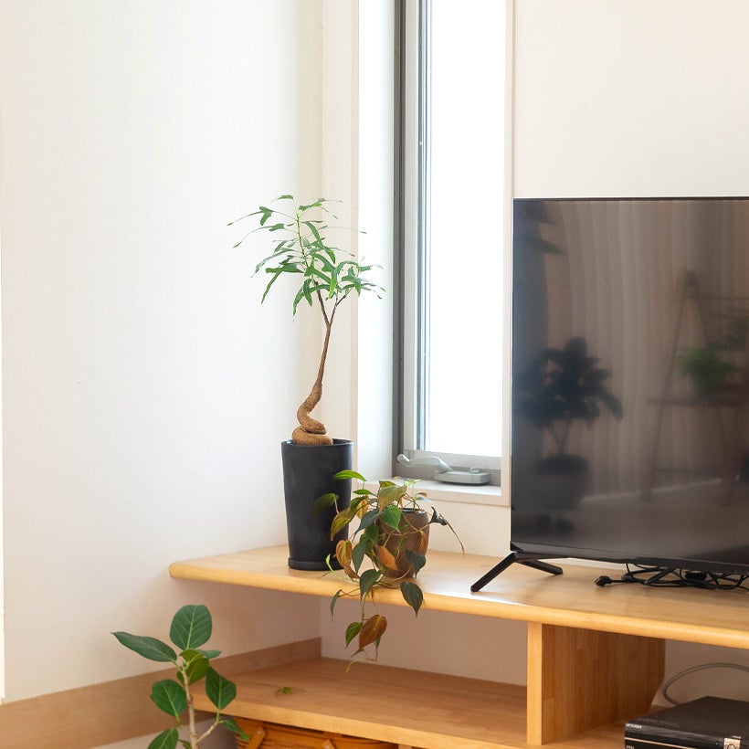 大きな植物はインテリアの中心的な存在。鉢1つで、部屋の雰囲気がグッとよくなります。