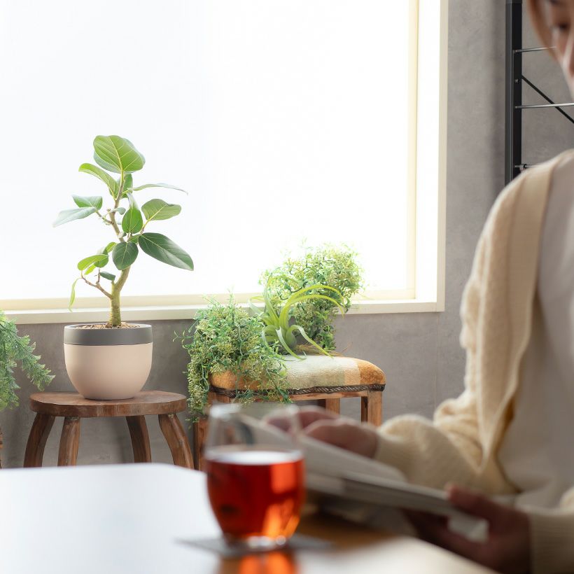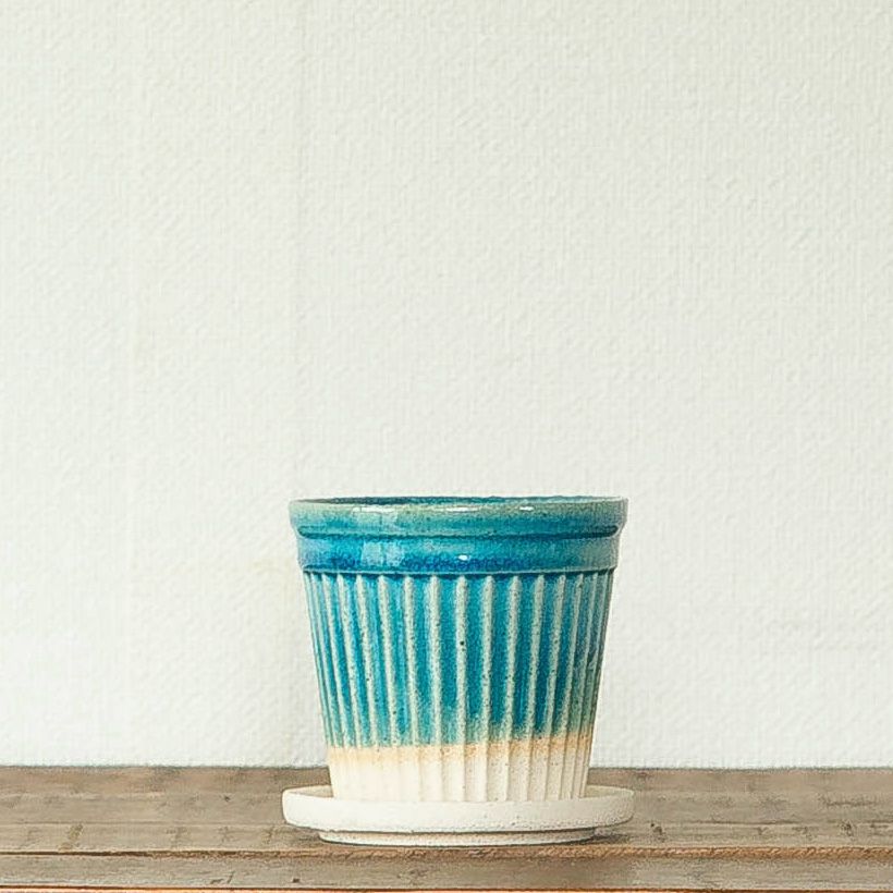 植木鉢の中ではめずらしい色味。受皿と鉢が一体型になったシリンダー型の陶器鉢です。鉢壁が薄いわりにしっかりしてて、鉢カバーとしても使えます!マットな風合いが好きな方は是非チェックを。2.5号~3号サイズの植物向け!