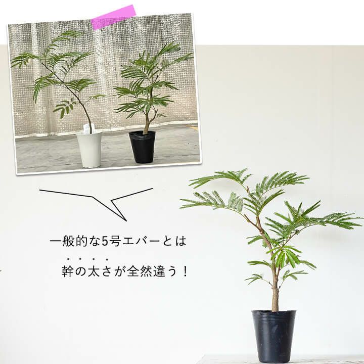 ただ一般的に、5号サイズだと枝がひょろひょろ。エバーフレッシュは大きいサイズでないと、幹を太くするのが難しいんです。