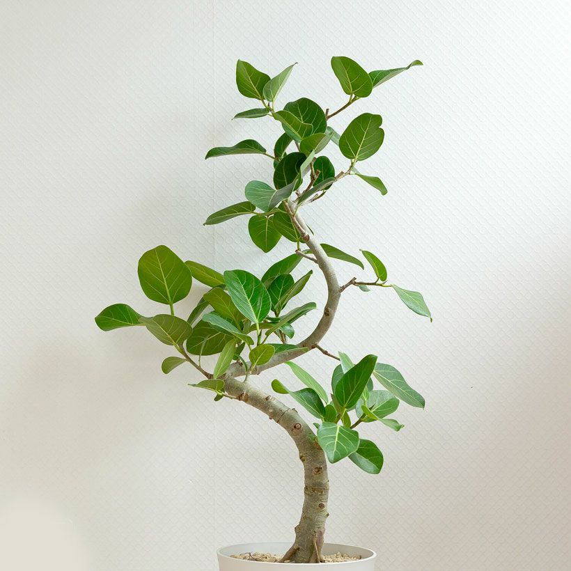 ガジュマルもフィカスの仲間。小さいサイズから大きいサイズ、幹が太いものから、形が面白いものまで種類も豊富。「幸せを呼ぶ木」という花言葉もgood!人気があるのも納得です。