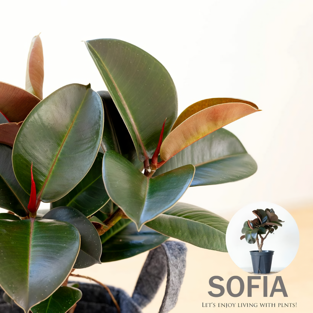 バーガンディーやメラニーの葉が比較的シュッとして尖っているのに対し、ソフィアは葉先が丸く、横幅があるのが特徴です。この「丸み」が、空間に柔らかい印象を与えます。