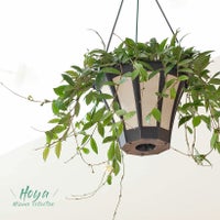 4月に注文。思っていたより更に大きくしっかりした苗が届きました! 届いた時点で花座が沢山あったので、咲くかなと期待していたら6月末〜7月頃たくさん咲きました。 9月になってまた咲き始めています。 明るい室内(南向きの大きな窓あり)の中心に吊っています。 いちど東向きの窓辺にに 移したら、そこでは蕾が開かないままポロポロ枯れていったので、花を咲かせたければやはりそれなりの明るさは必要みたいです。明るければ室内でもちゃんと咲きました。 水やりは月に1、2回程度。葉水は週一くらいでしています。 こちらは吊具の底に穴がなかったため、吊具をつけたままでも水やりできるよう、底に排水用の穴を開けました。 あらかじめ吊具を細工したり、マクラメなどに変えると良いと思います。 ホヤの花を見たい方には本当におすすめです。