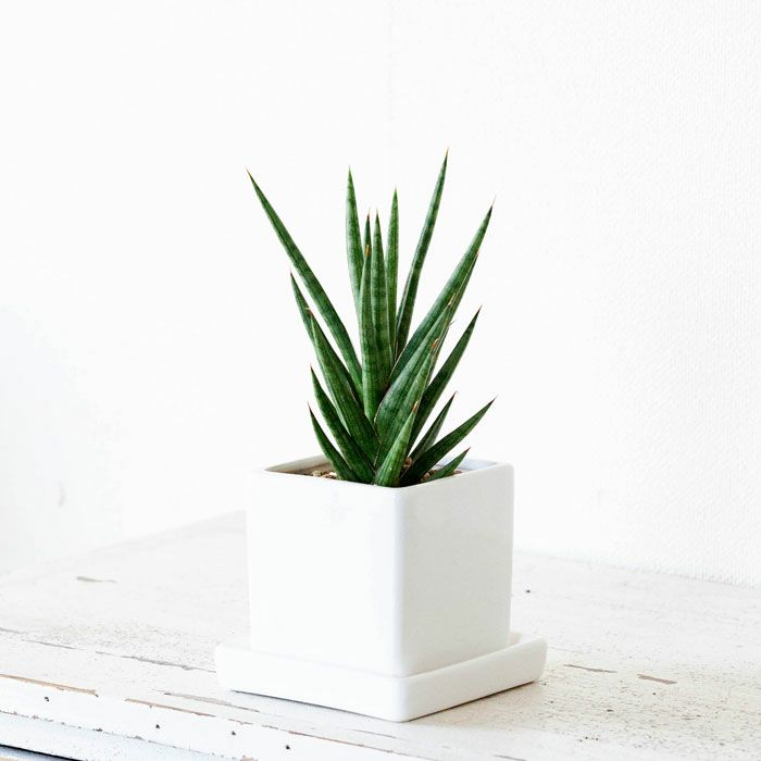 丈夫でおしゃれ!細葉のサンセベリアを、モダンな鉢で。