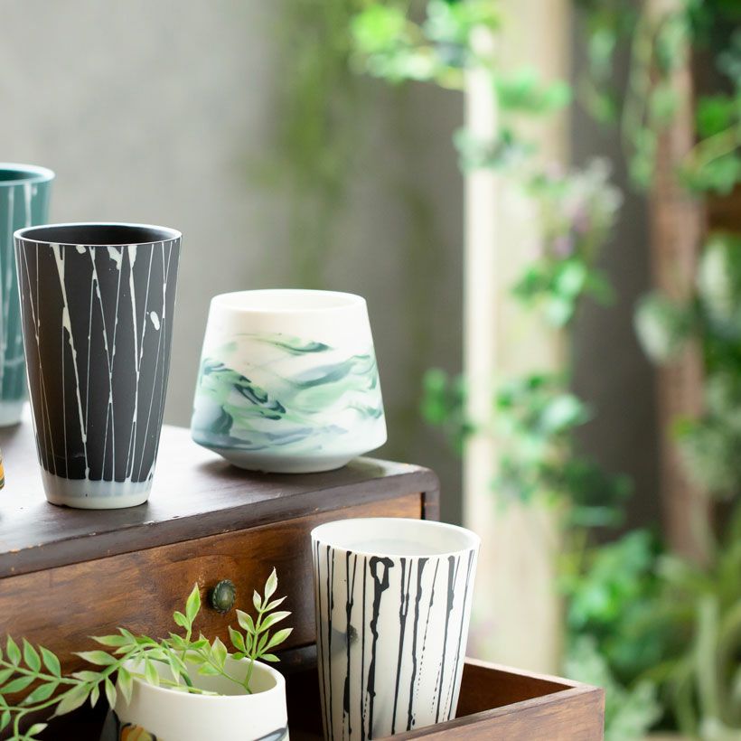 富士をイメージ。作家さんモダンPOT白地×グリーン(7cm)