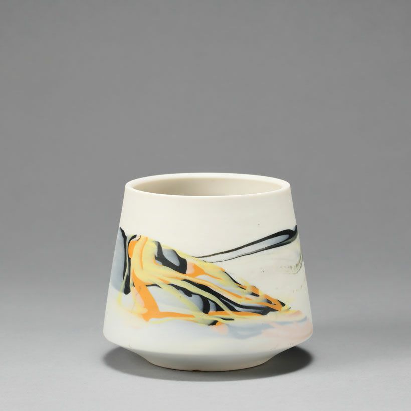 雨を降らしたような。作家さんモダンPOT白×黄ライン(7.5cm)