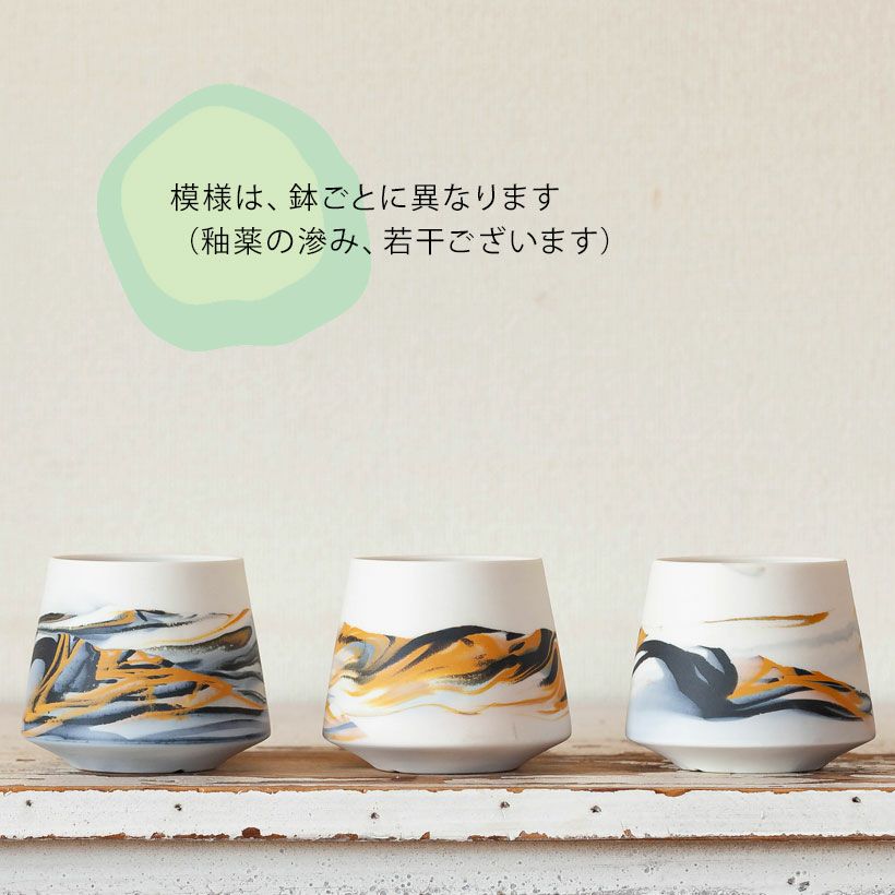 富士をイメージ。作家さんモダンPOT白地×墨オレンジ(7cm)