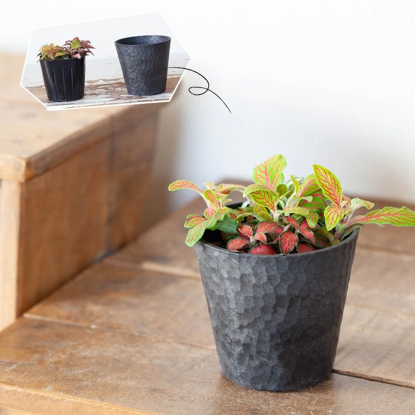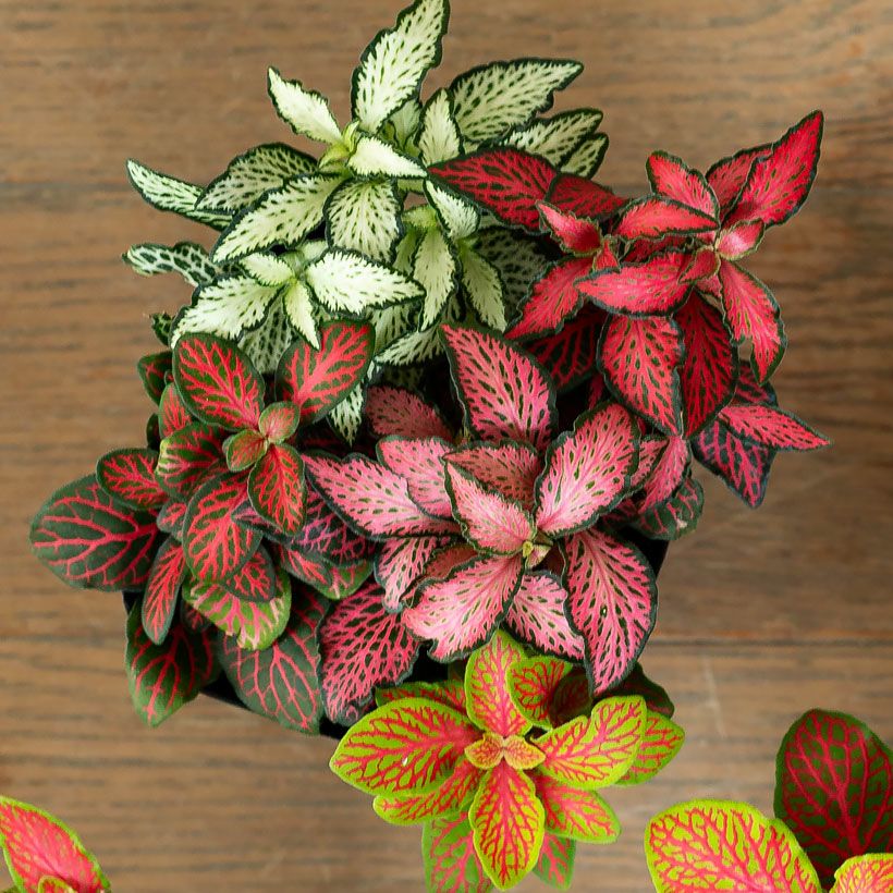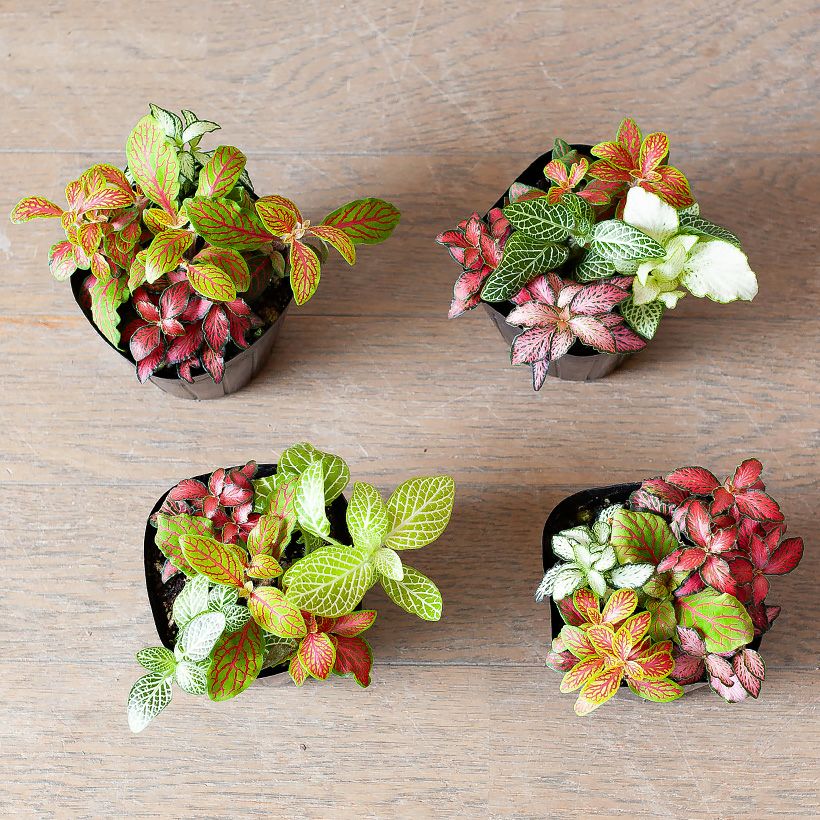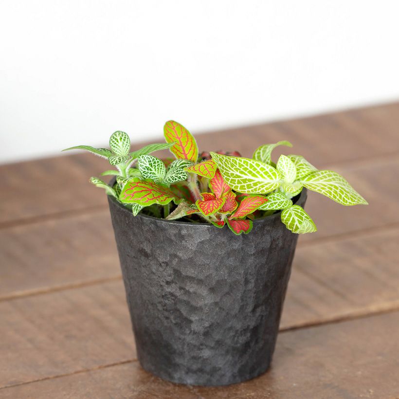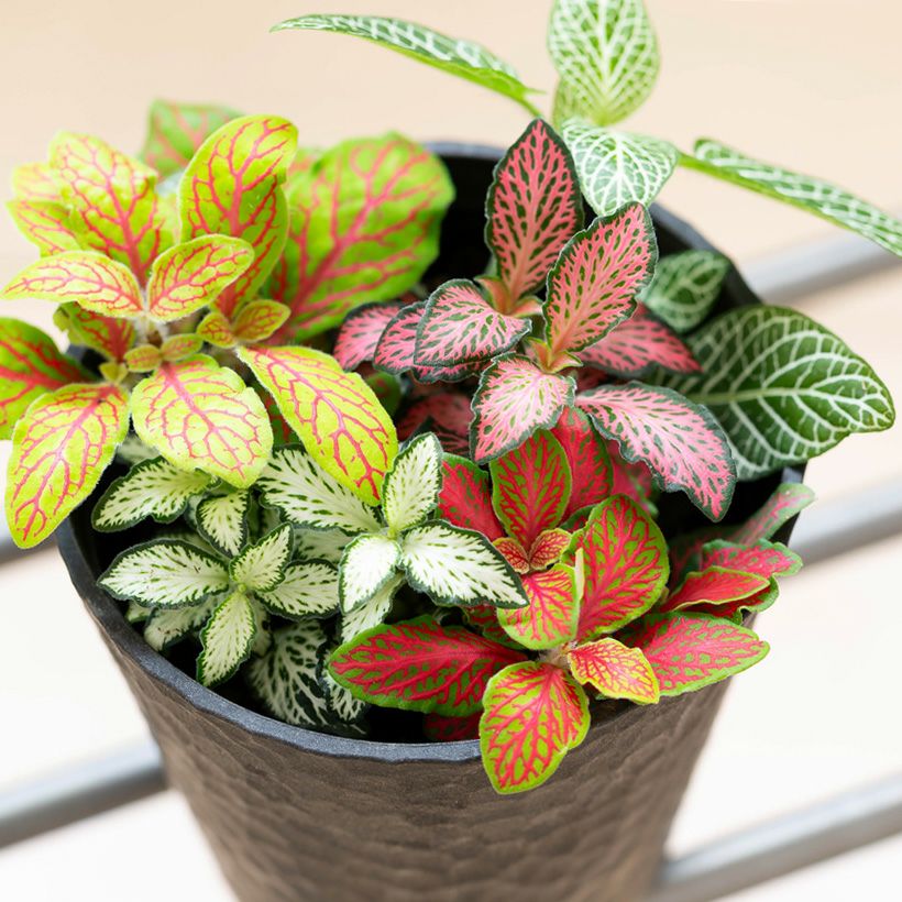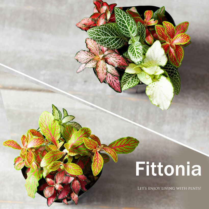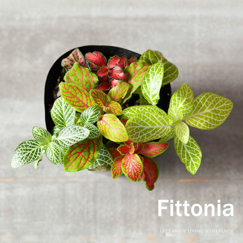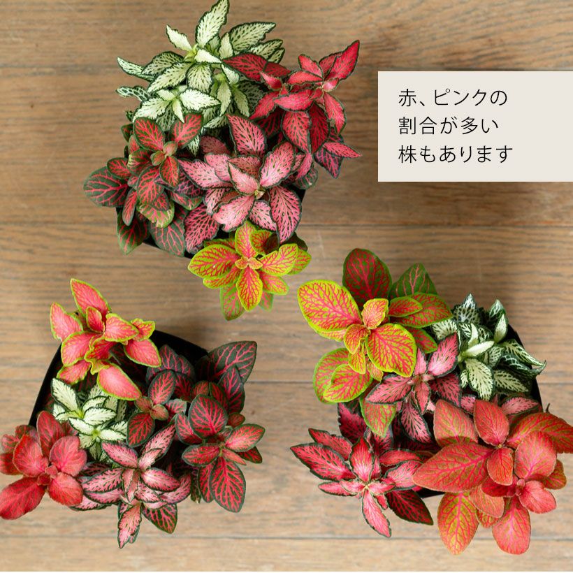 4~5品種のフィットニアを、ギュッと寄せ植えしました。