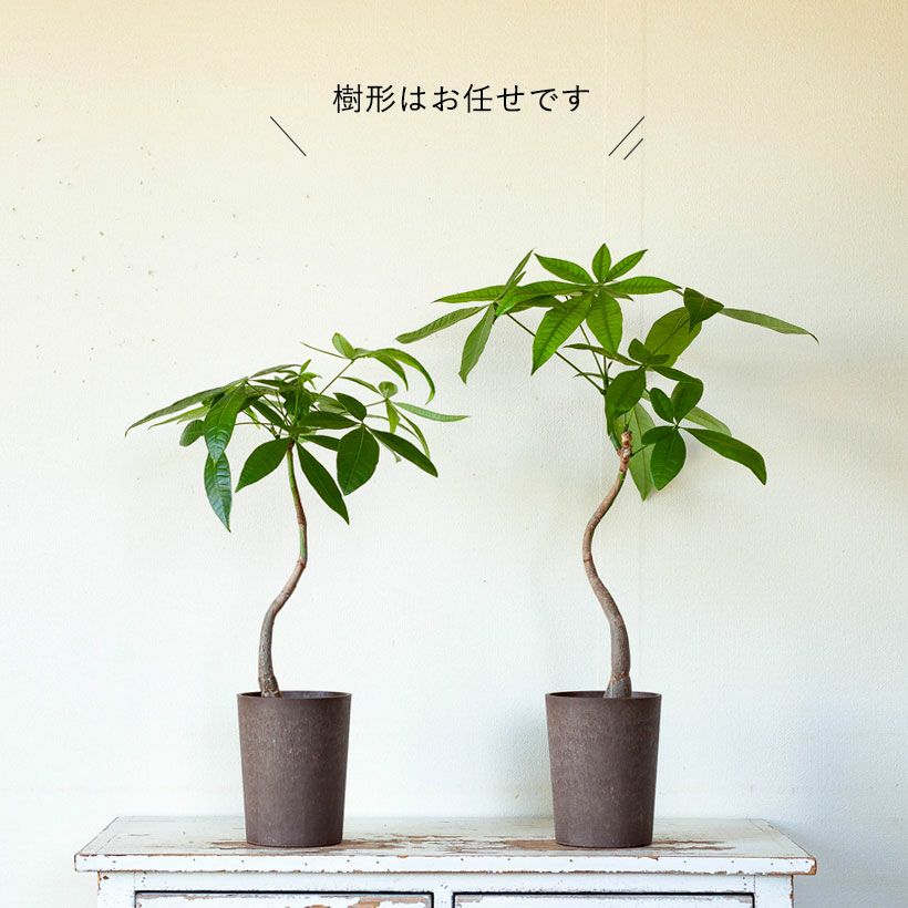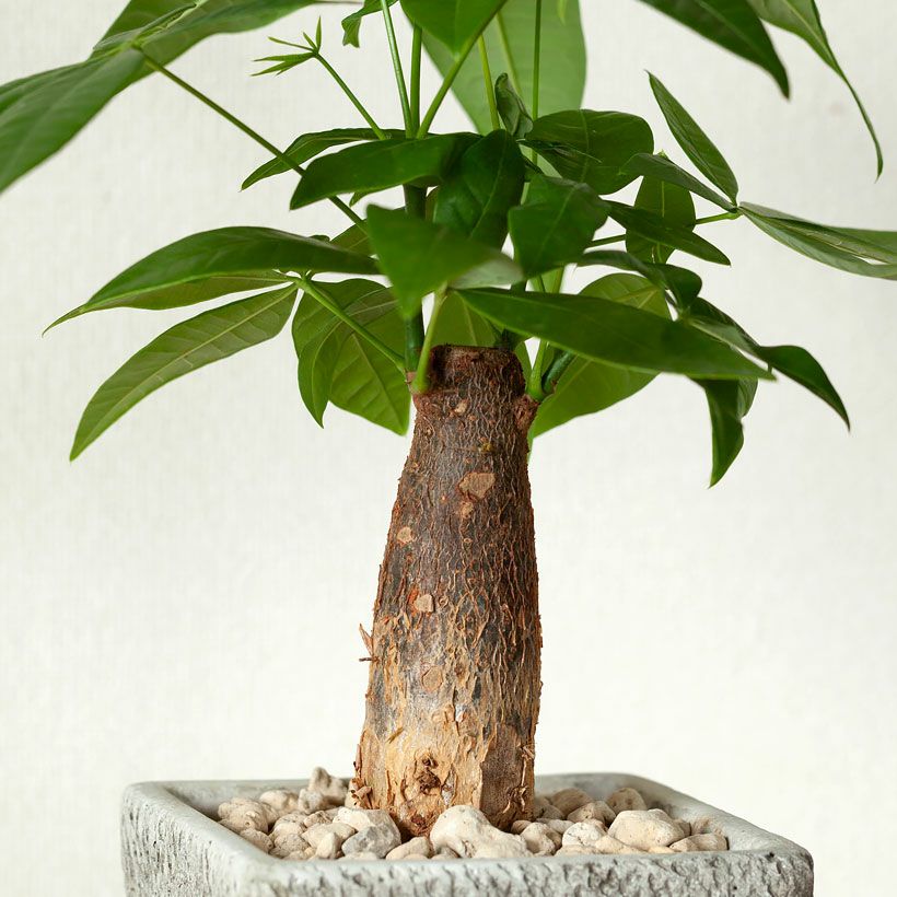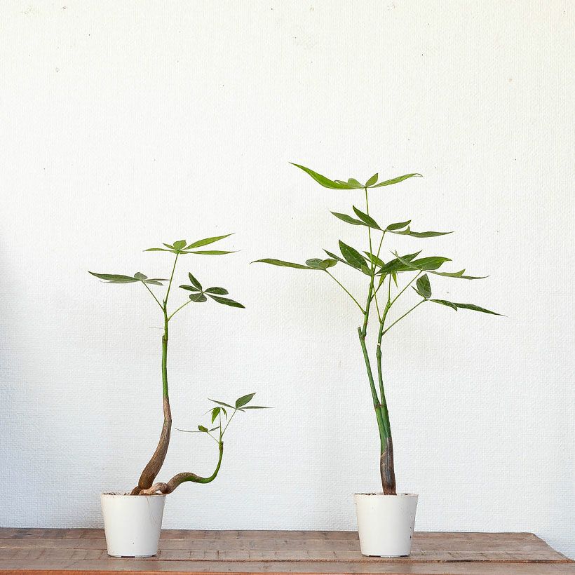 小さい鉢で作りこんだ、実生のパキラ。
