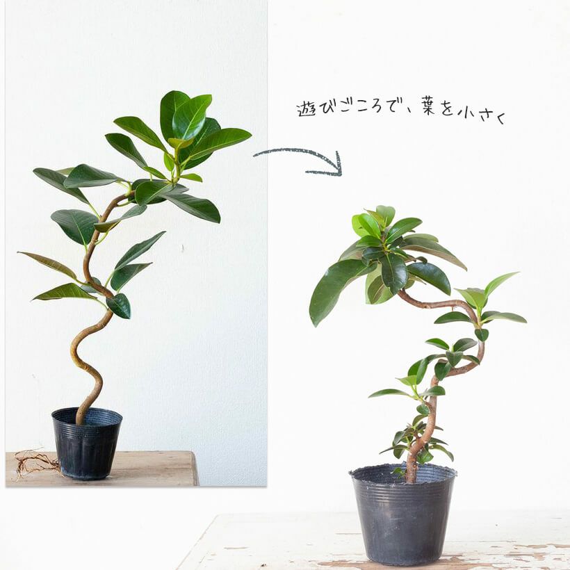 小さめサイズで幹を太らせたシェフレラ・ムーンドロップ