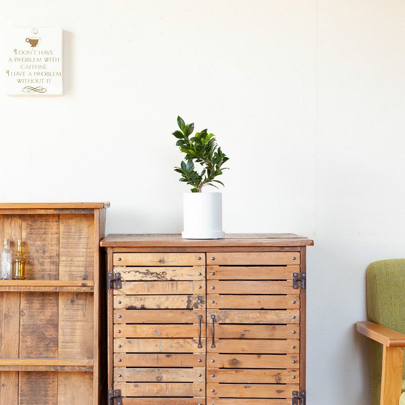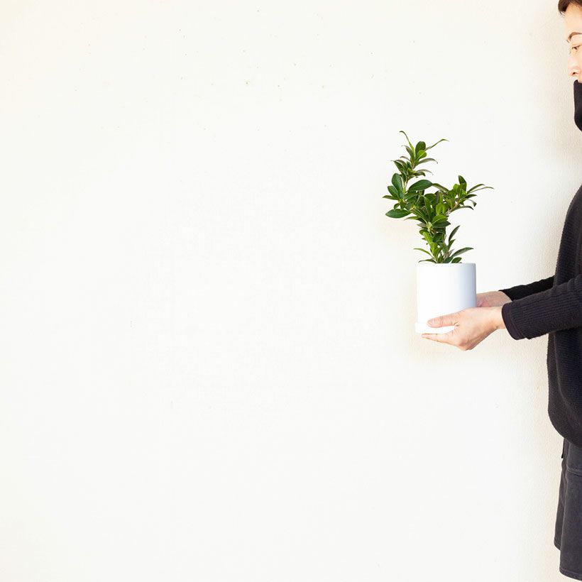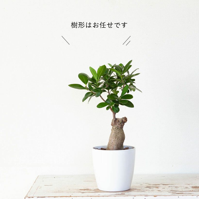 幹を曲げたガジュマルコンパクタ in 白マット陶器鉢