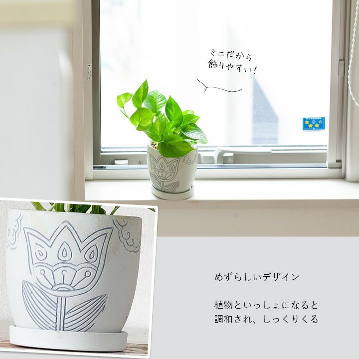 迷彩ポトス『グローバルグリーン』を、カワイイ鉢で。