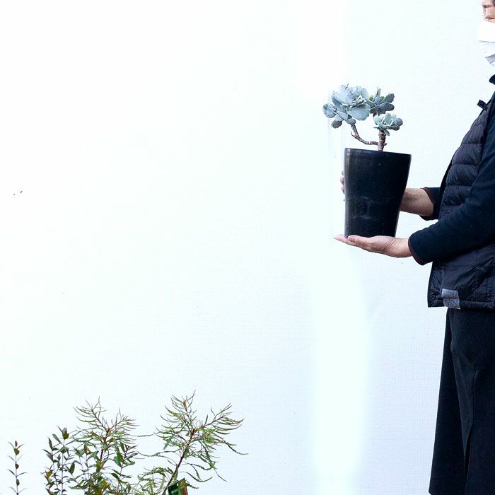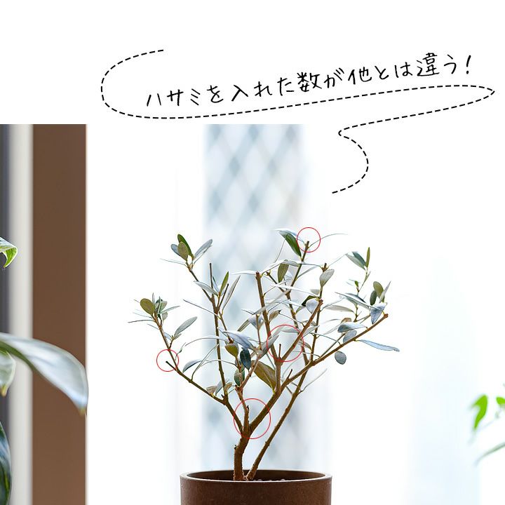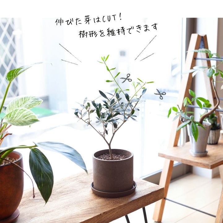 小さめサイズで幹を太らせ、コンパクトに作りこんだシェフレラ
