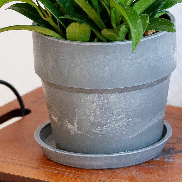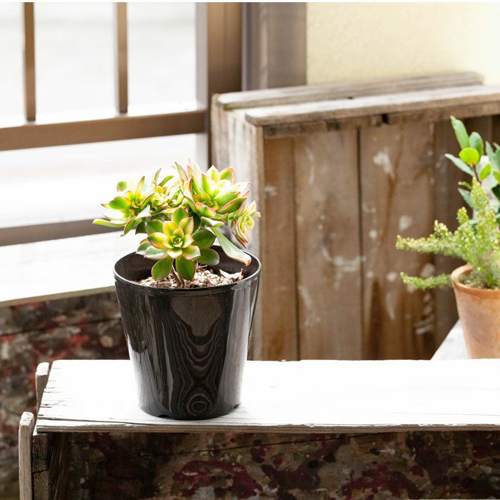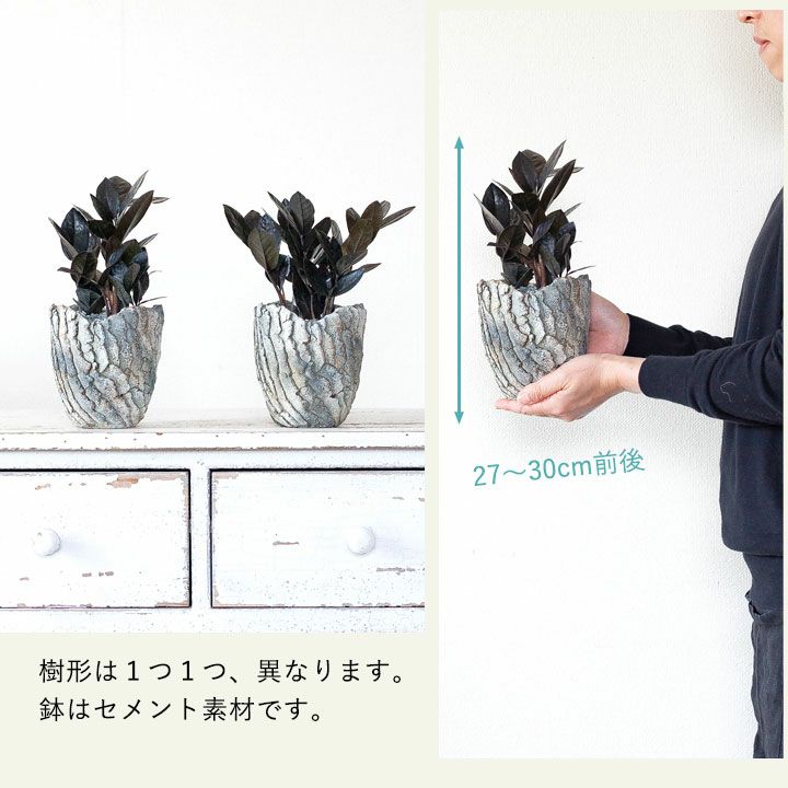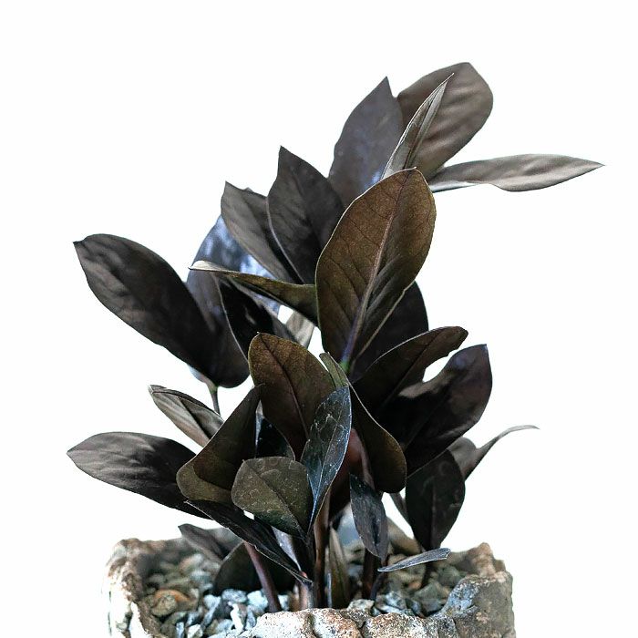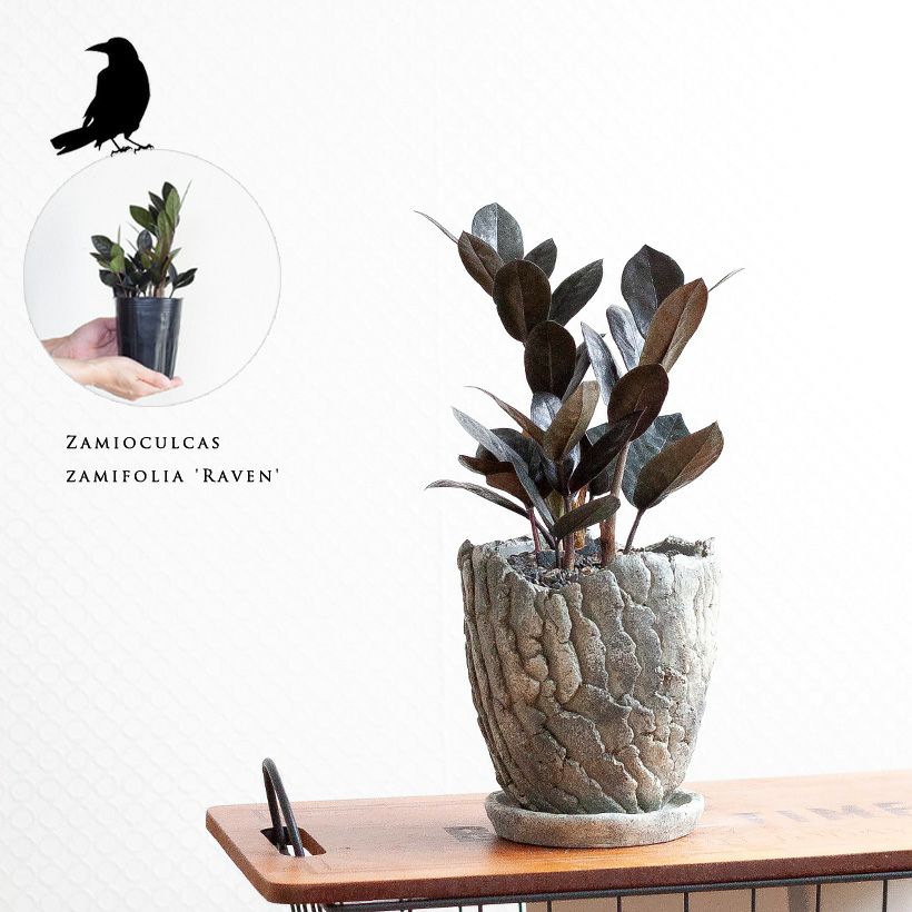 ザミオクルカス・レイヴンを石の質感たっぷりの植木鉢に植えて。