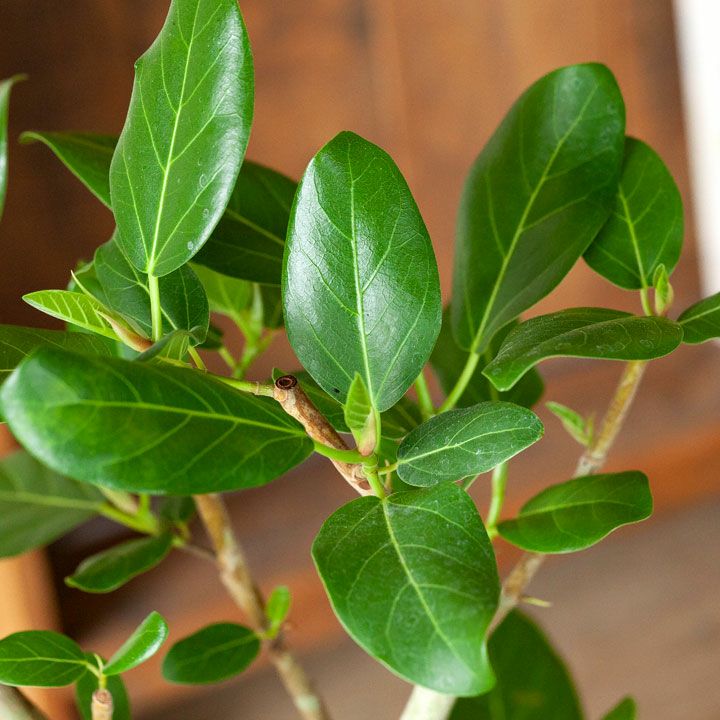 葉脈が可愛いアフェランドラ。水耕栽培。