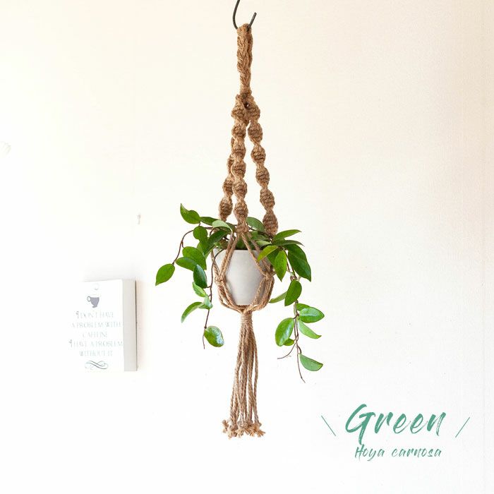 【送料無料】マクラメで吊るすホヤ"グリーン"(ホヤ・鉢・マクラメの3点セット)