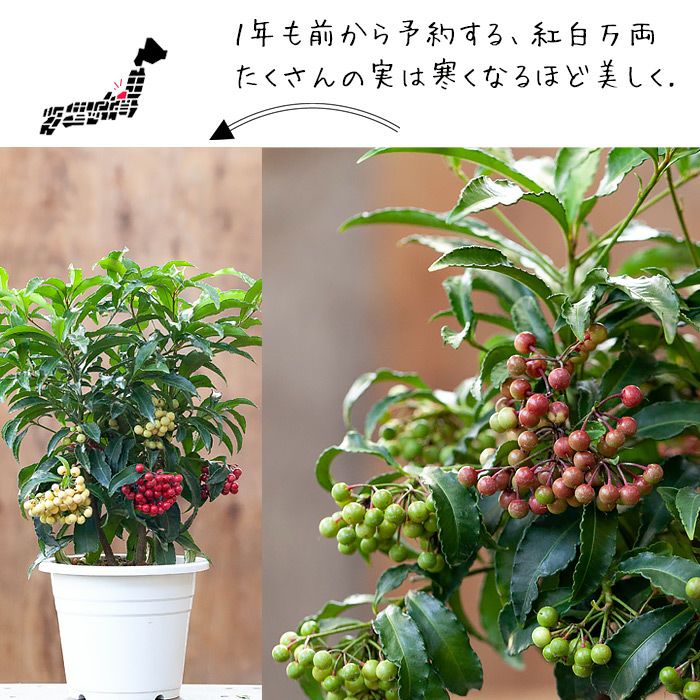 【送料無料】紅白寄せ植え!めでたい大実万両