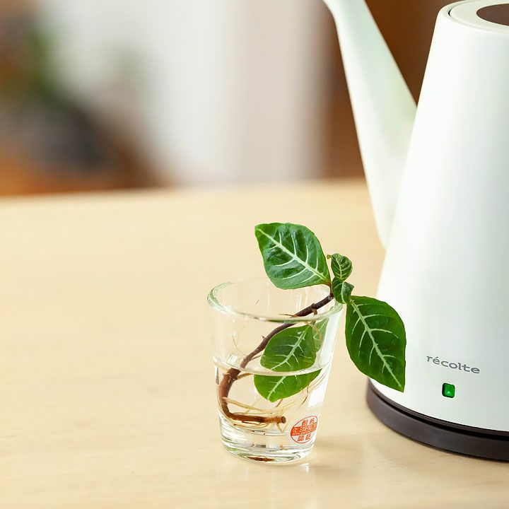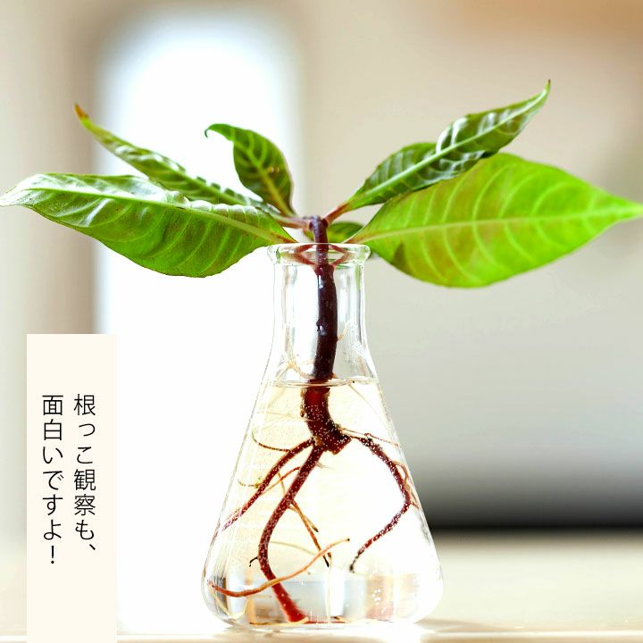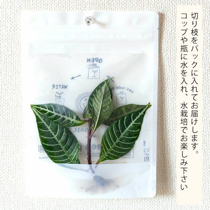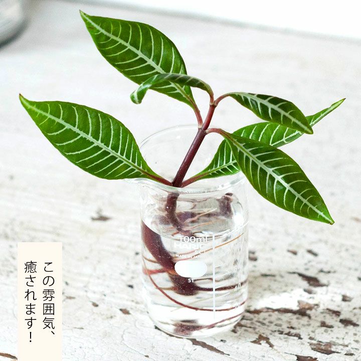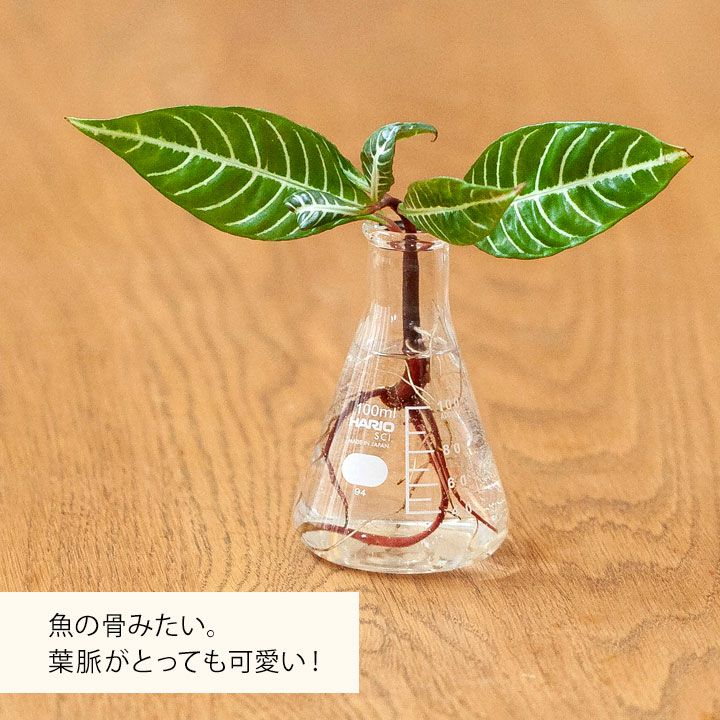 葉脈が可愛いアフェランドラ。水耕栽培。
