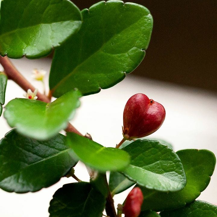 ハートが実る木(ハリツルマサキ)。花言葉は「小さな幸せ」