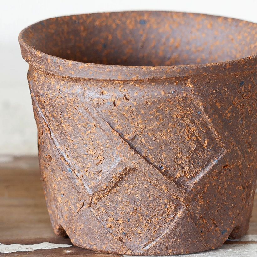 職人が手彫り!武骨で落ち着いた雰囲気の陶器鉢(10cm)