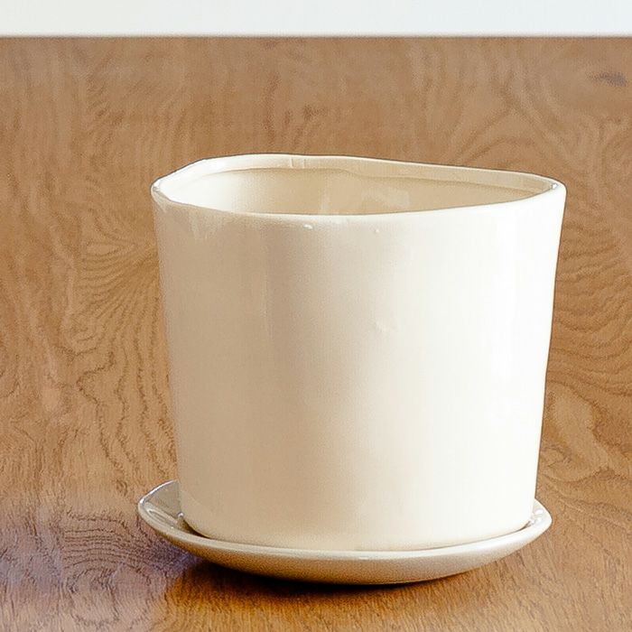 ガラスのような質感のデザインポット(受皿付)(9cm)