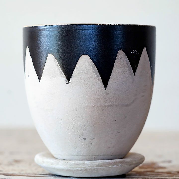 雨を降らしたような。作家さんモダンPOT黒×白(7.5cm)