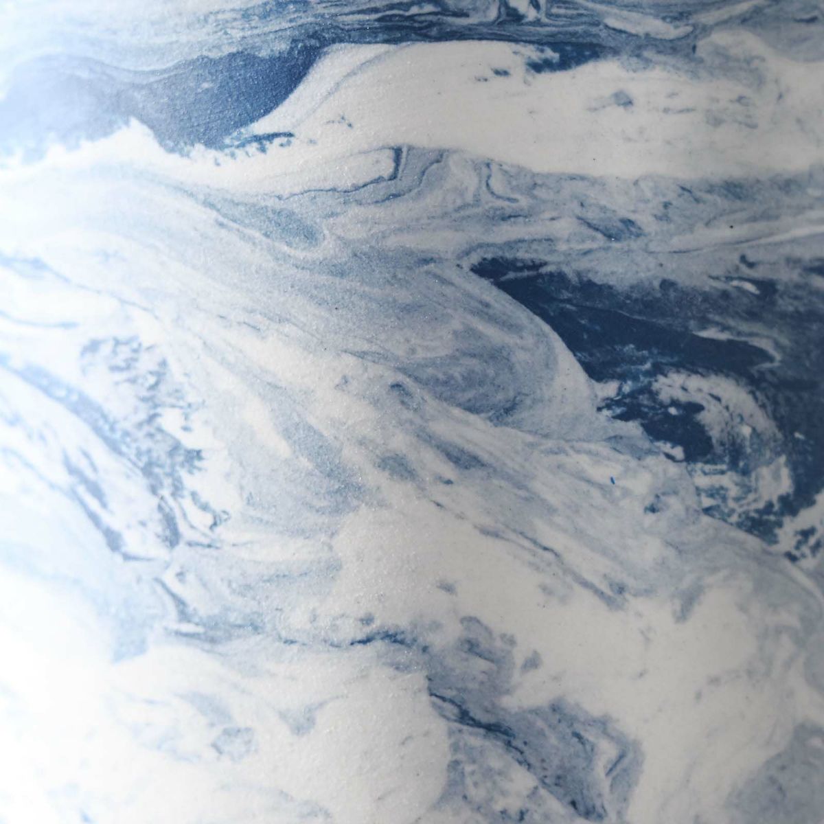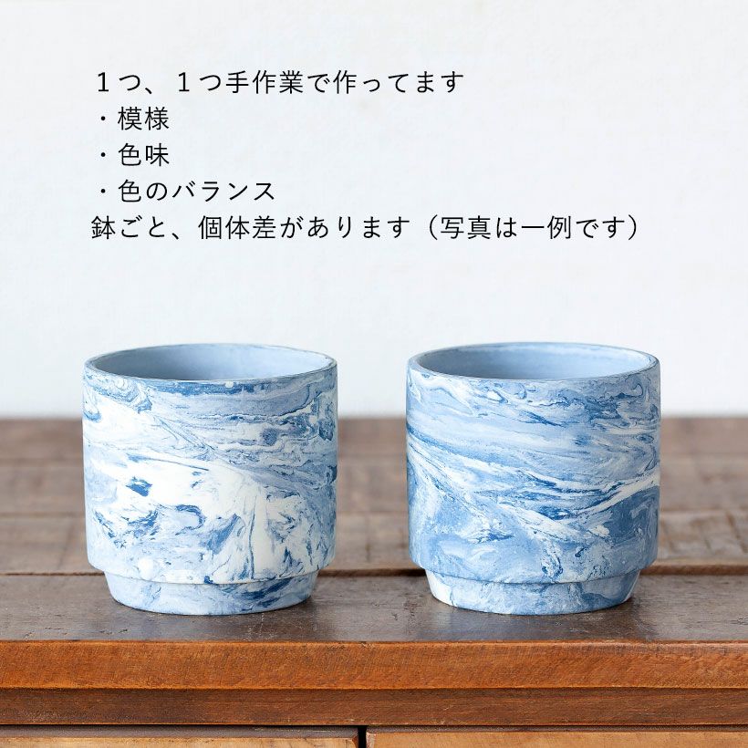 雨を降らしたような。作家さんモダンPOT白×青ライン(7.5cm)