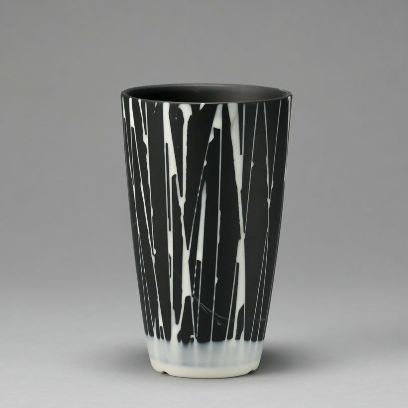 雨を降らしたような。作家さんモダンPOT白×黒ライン(7.5cm)