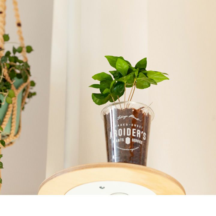 コーヒーを飲むようなカップで、コーヒーの木を育てる。